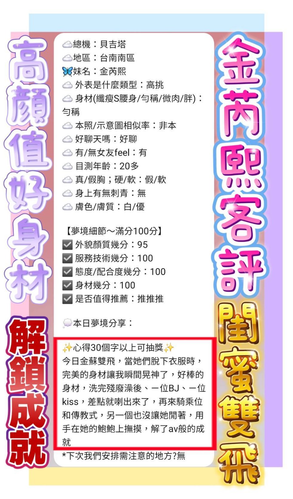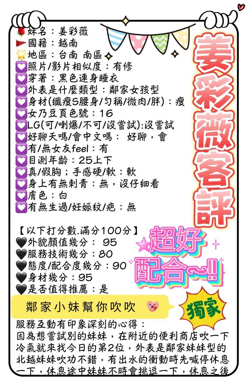 顏質好.身材好.態度好.配合度高    Review by 朱**